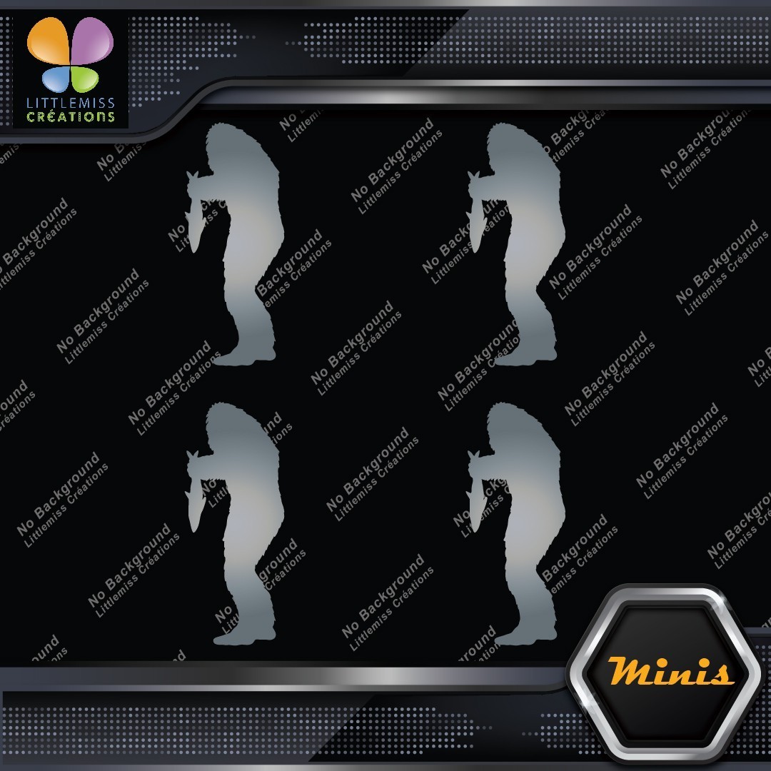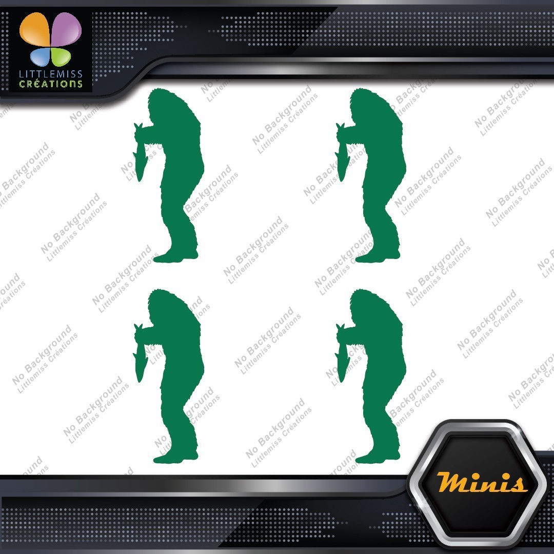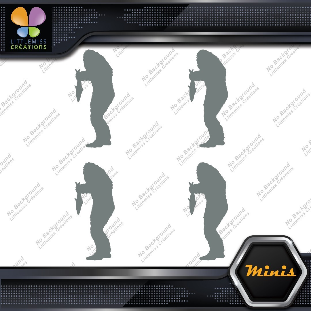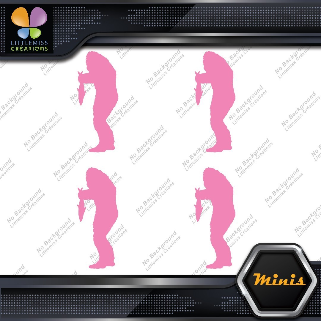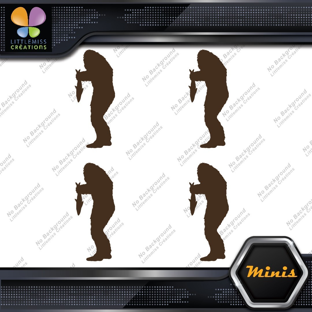 Bigfoot Sasquatch Yeti Holding Fish Pack of 4 MINI SIZE Decals Stickers Vinyl