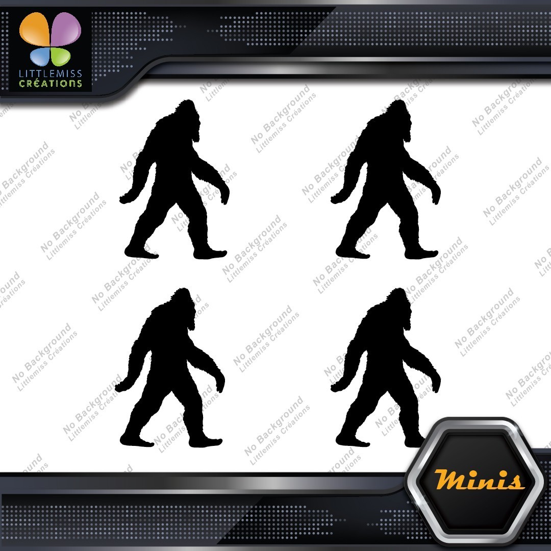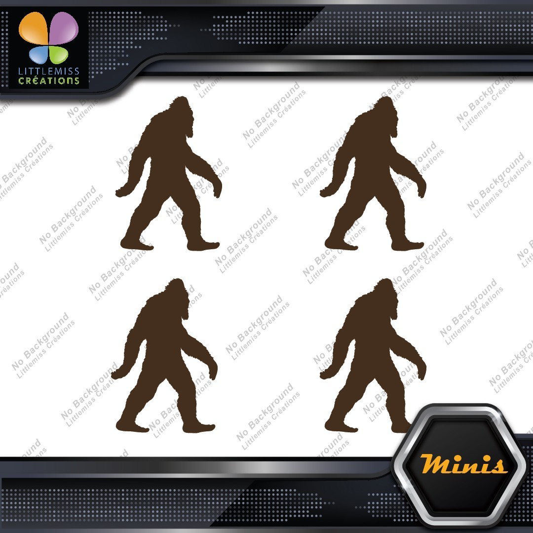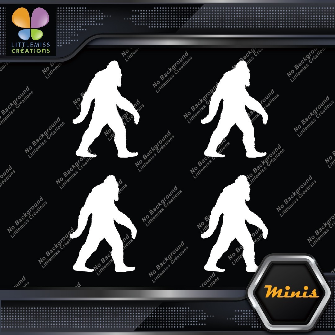 Bigfoot Sasquatch Yeti Walking Beard Pack of 4 MINI SIZE Decals Stickers Vinyl