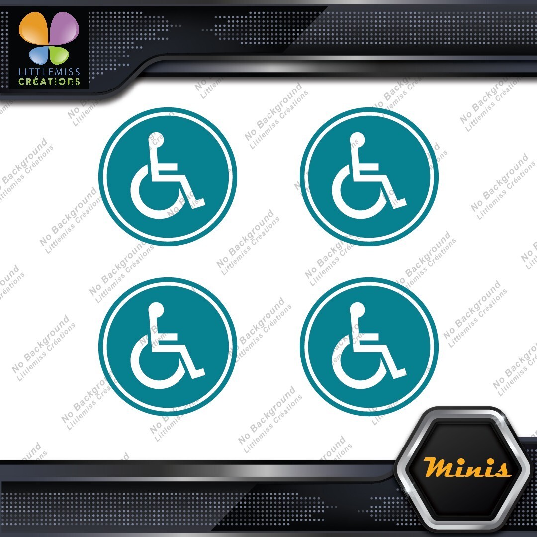 Handicap Cicle Wheelchair Disabled Pack of 4 MINI SIZE Decals Stickers Vinyl